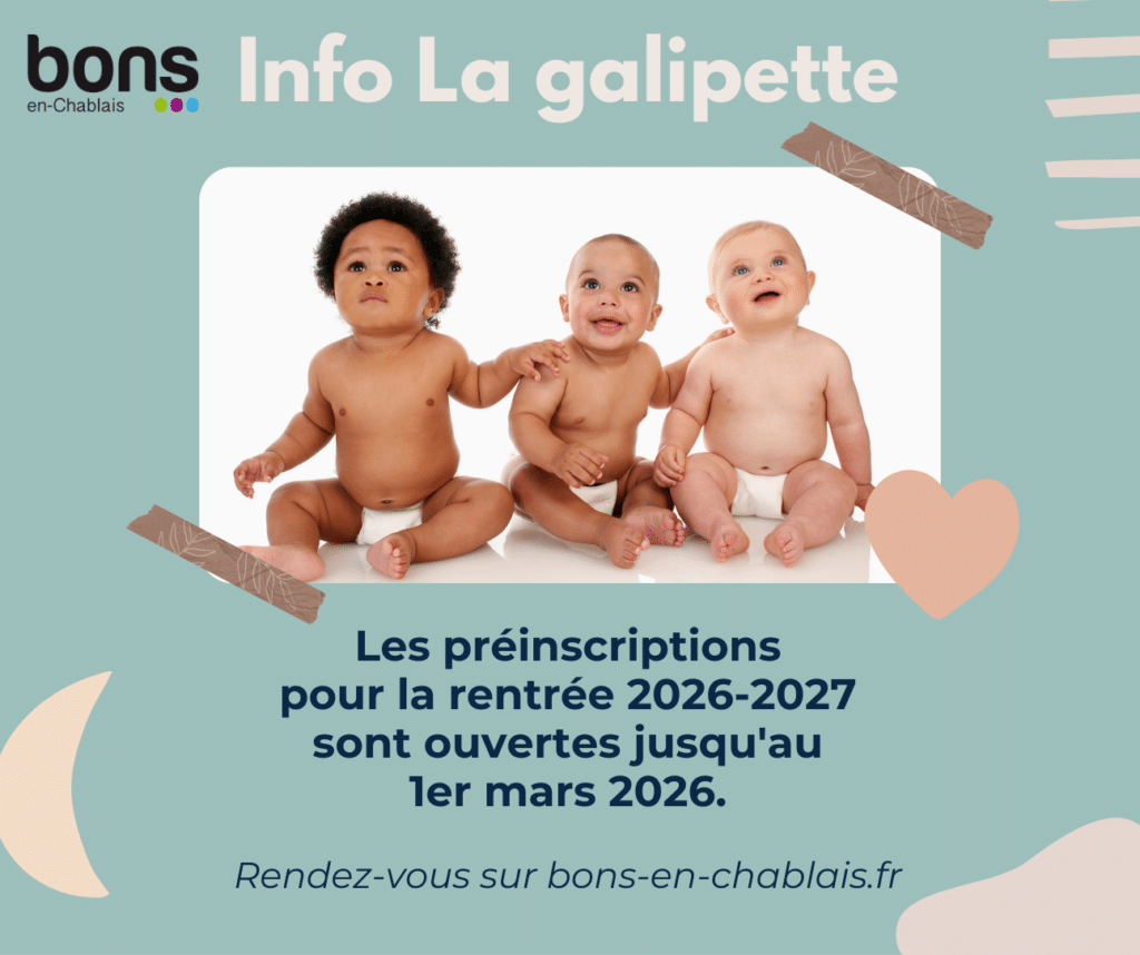 Les préinscriptions à la crèche La Galipette pour la rentrée 2026-2027 sont ouvertes jusqu'au 1er mars 2026.