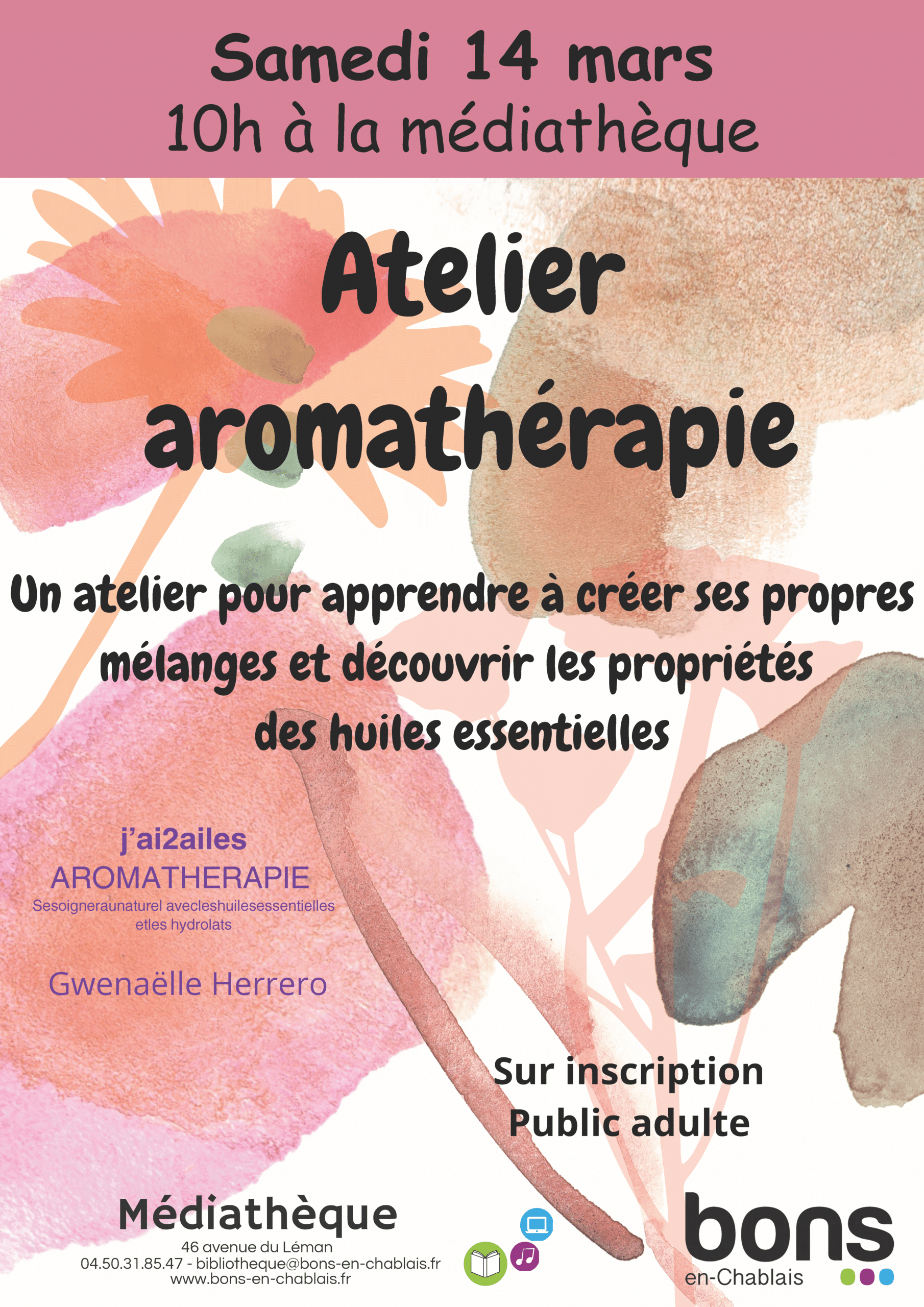 La médiathèque vous propose, samedi 14 mars, à 10h, un atelier aromathérapie.