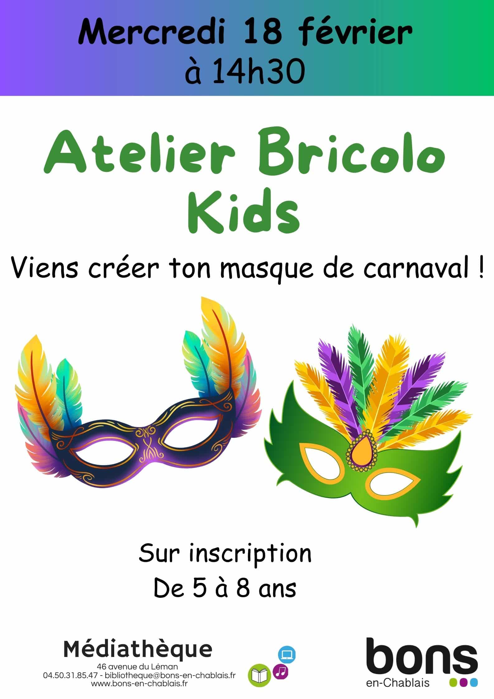 La médiathèque propose un atelier, le mercredi 18 février, à 14h30, pour fabriquer un masque de carnaval.