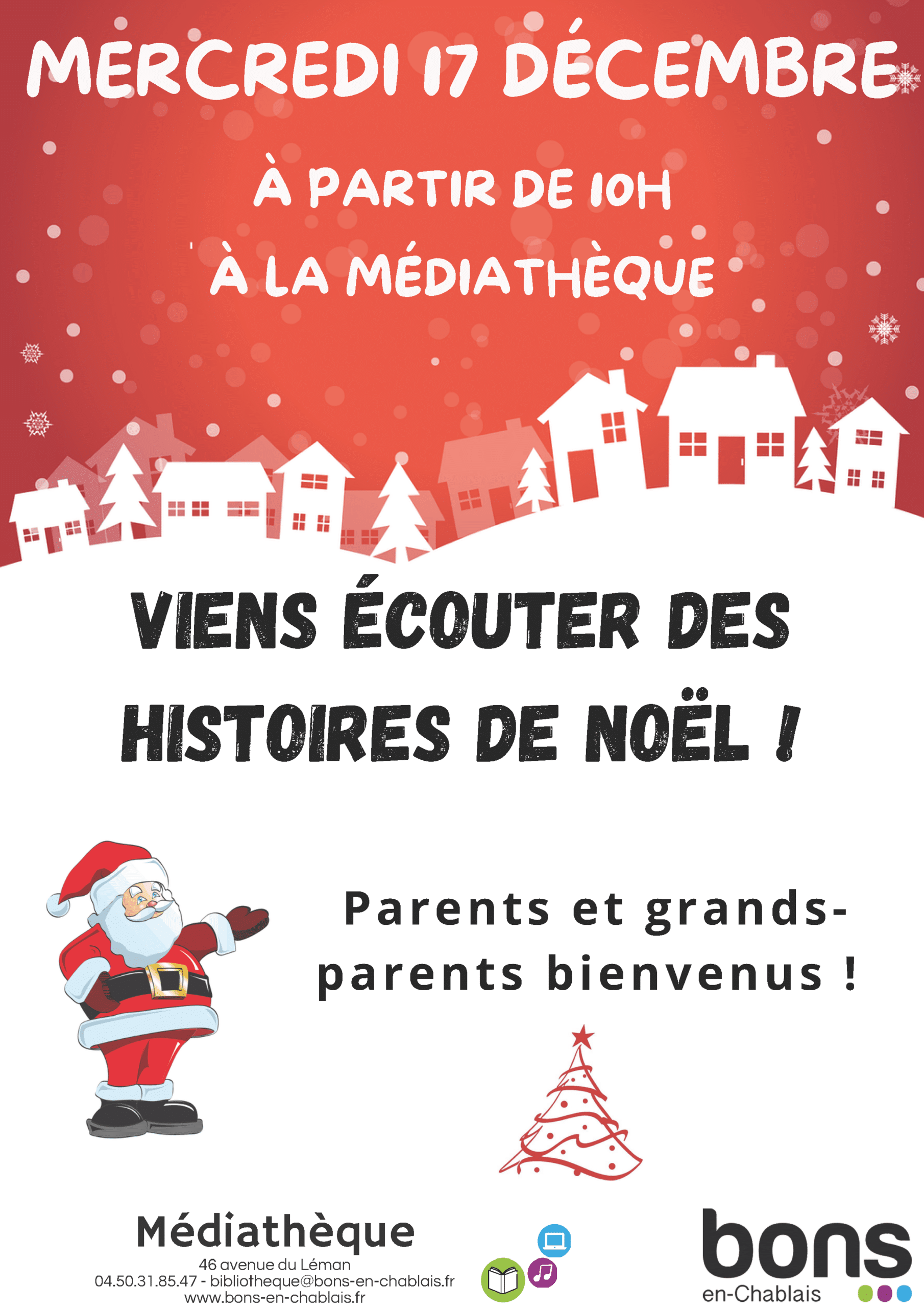 La médiathèque propose, à partir de 10h, des lectures d'histoires de Noël pour toute la famille.