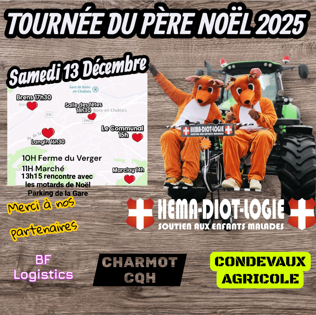 Comme chaque année, l'association Héma-Diot-Logie vous propose la tournée du Père Noël.