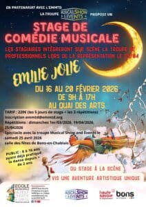 Les stagiaires intègreront la troupe de professionnels lors de la représentation de la comédie musicale « Emilie Jolie » à la salle des fêtes le samedi 25 avril 2026