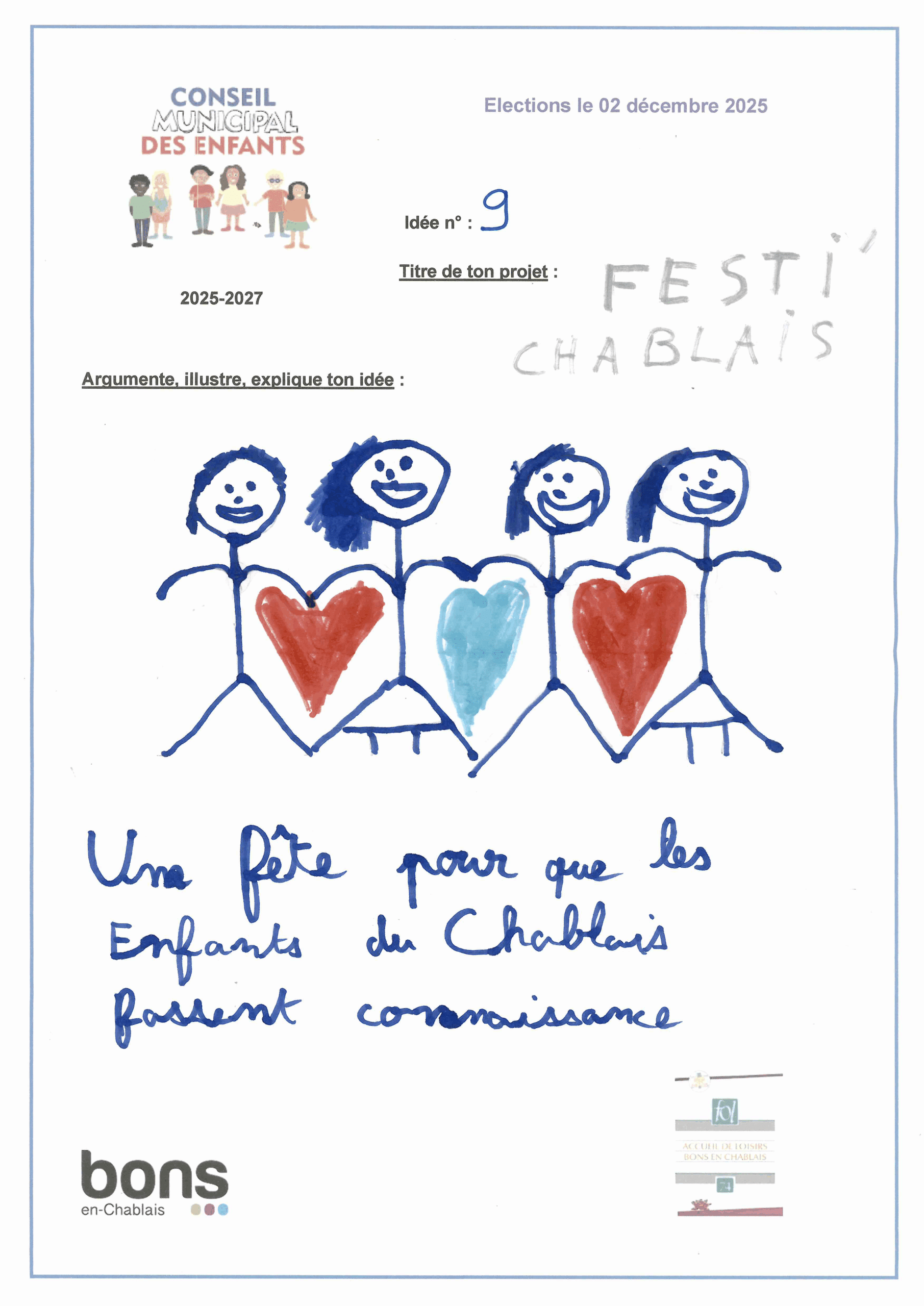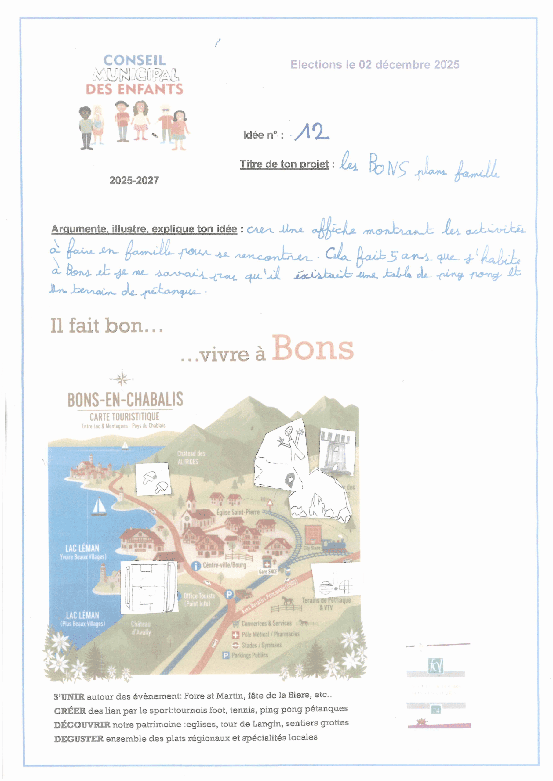 Considérant l’intérêt de mobiliser les enfants comme acteurs de la vie citoyenne, la commune de Bons-en-Chablais propose la mise en place d’un Conseil Municipal d’Enfants– CME.